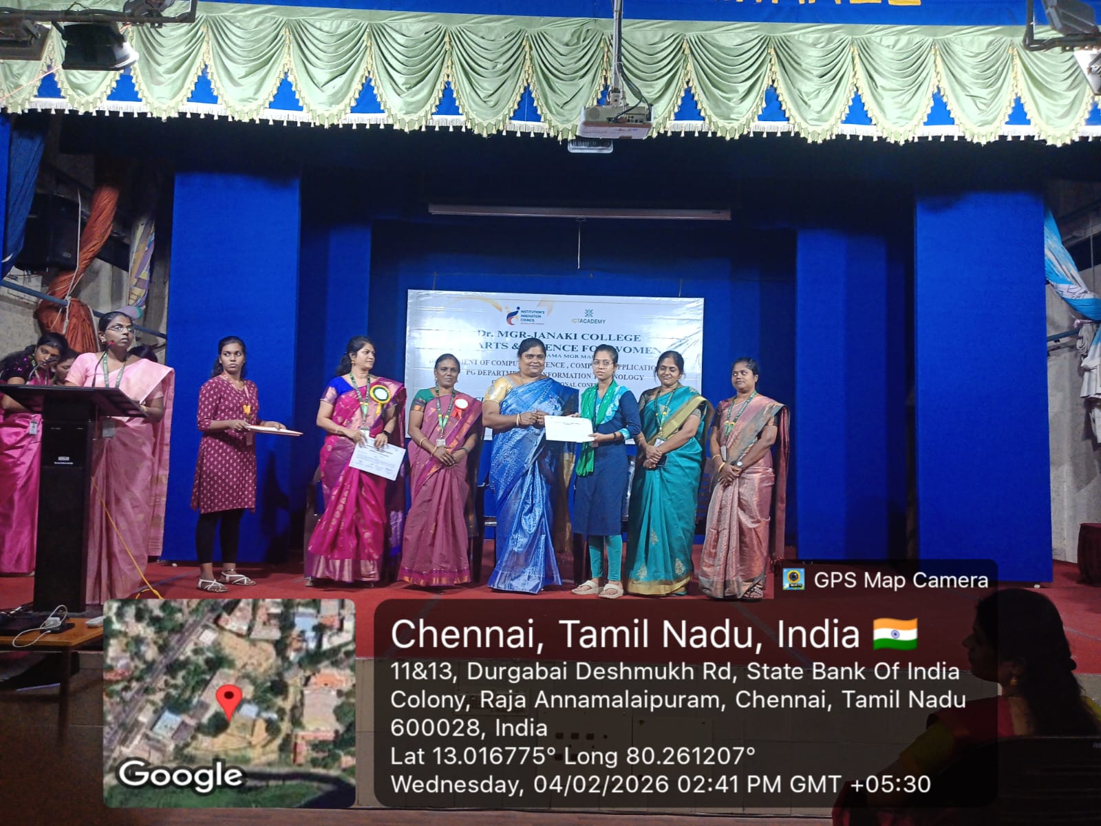 Ms.Janani and Ms.Karunya of I M.Sc CS, participated and presented paper titled "LIGHTWEIGHT CRYPTOGRAPHY IN IoT AND SECURITY" on Synergizing Vision Systems with Artificial Intelligence (ICSVSAI-2026) on 3rd and 4th Feb 26, organized Department of Computer Science, Dr.M.G.R.Janaki Arts and Science College for Women, Chennai